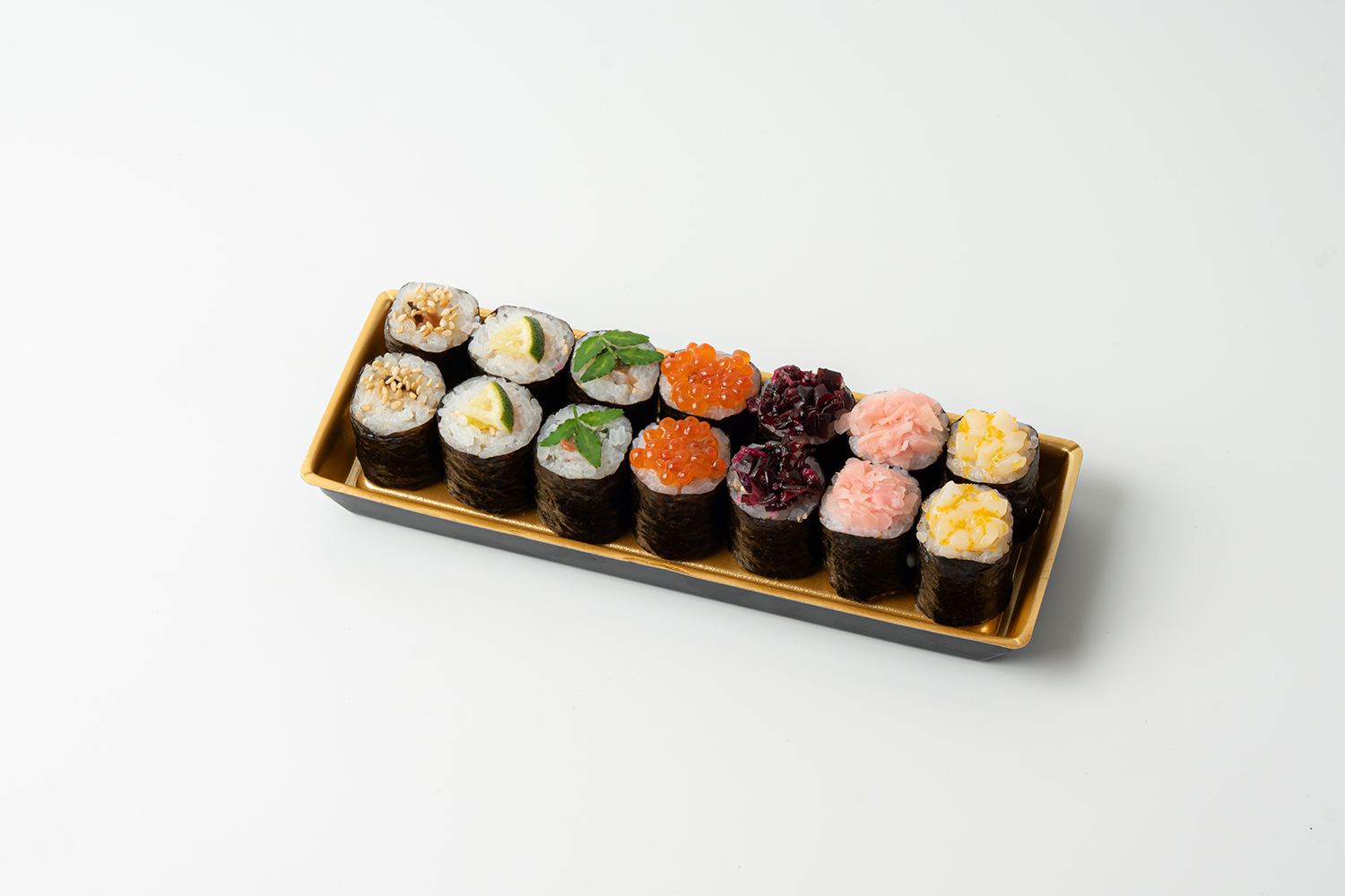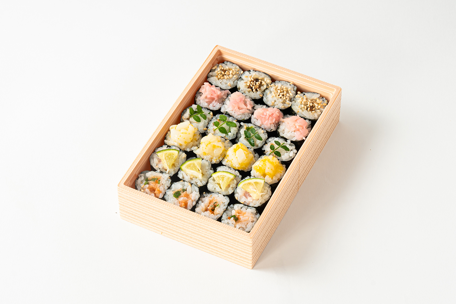 こだわりのゆず酢飯に5種類のネタ、みょうが・こんにゃく・しいたけ・たけのこ・めはりを合わせ